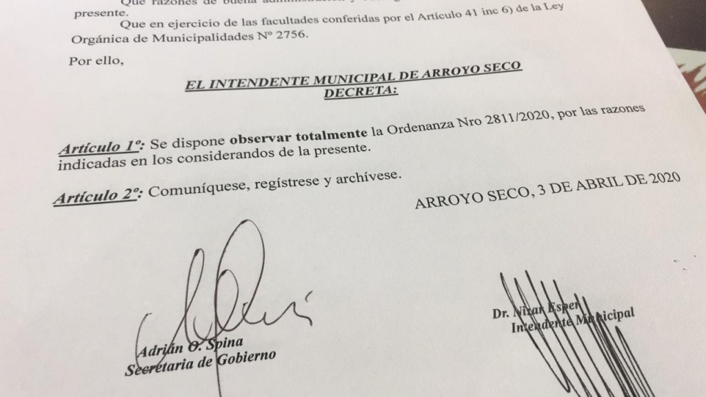 Fe.Tr.A informa del Veto por parte del Ejecutivo Municipal de Arroyo Seco de la Ordenanza 2811/2020 (que proponía el aumento de la tasa Portuaria).