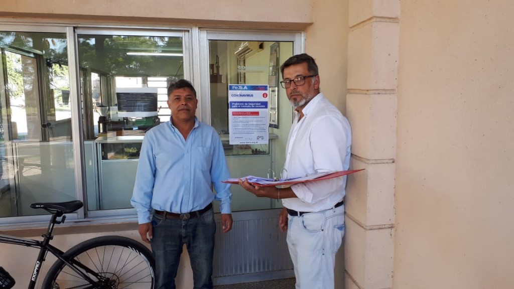 Visita a la Planta de Acopio Novagro S. A. para verificar el cumplimiento del protocolo provincial de seguridad sanitaria ante la pandemia. Higiene en baños, distanciamiento social, separación entre camiones y cargar mercadera que evite el rechazo en puerto.