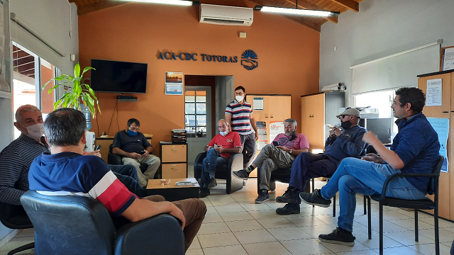 Directivos del TRA Totoras acompañados por dirigentes de Fe.Tr.A se reúnen con gerente y responsable de logística de ACA.