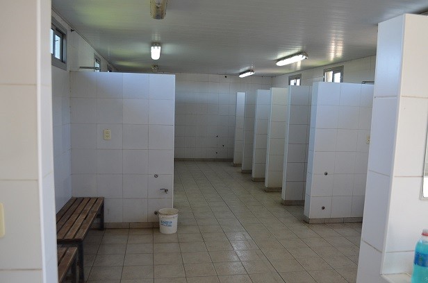 Claudio Enri secretario gremial y Edgardo Aniceto jefe de prensa de Fe.Tr.A verifican el cumplimiento del Protocolo Covid y condiciones de salubridad e higiene en baños y comedores.