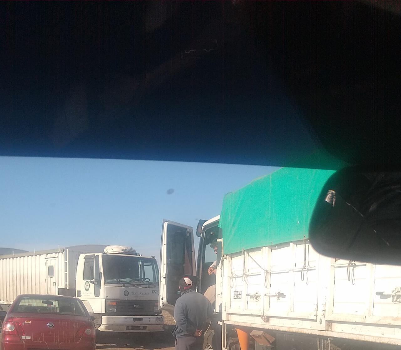 Nuestro secretario gremial junto a las autoridades del centro dialogan con el responsable de la empresa dadora de carga.