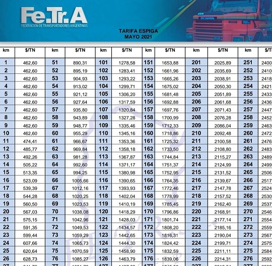Fe.Tr.A, Clic sobre el titulo de la nota para ver Tarifa Espiga Fe.Tr.A completa.