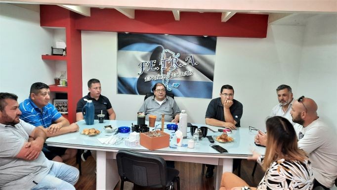 El Presidente de la Federación Sr. Ovidio Rodriguez junto a los demás integrantes del Consejo, Comisión Directiva, Secretario Gremial y asesores legales reciben al grupo de transportistas de la entidad adherida, con quienes se abordan diferentes temas de interés para nuestros representados.