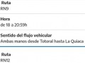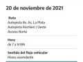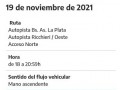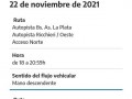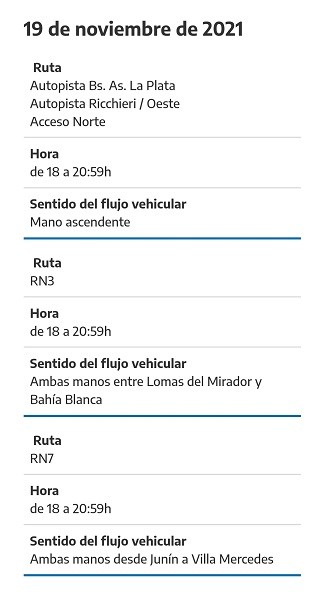 Rutas con restricción, los días son el 19 de Noviembre, 20 de Noviembre y 22 de Noviembre.