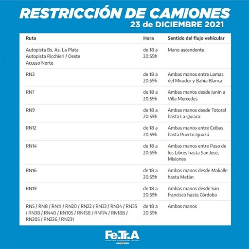 RESTRICCIÓN HORARIA A LA CIRCULACIÓN DÍA 23 DE DICIEMBRE.