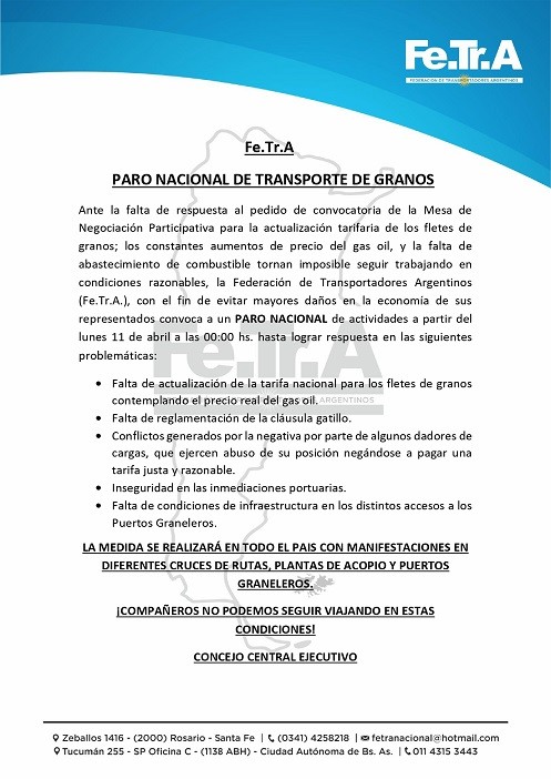 PARO NACIONAL DE TRANSPORTE DE GRANOS