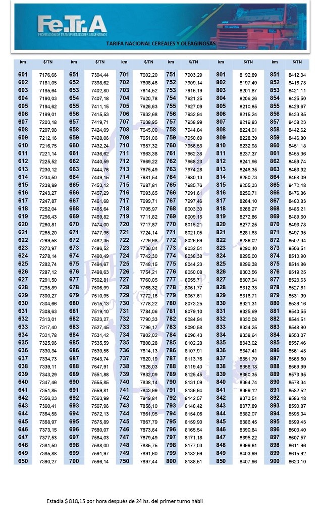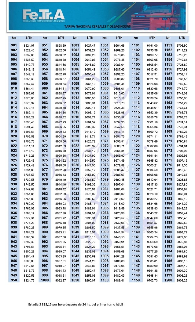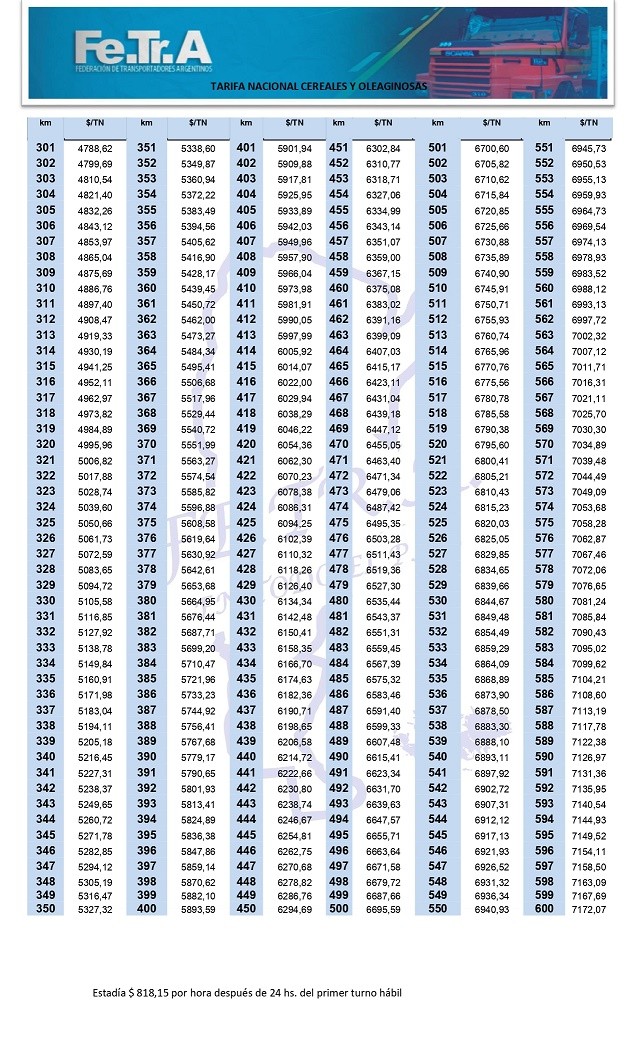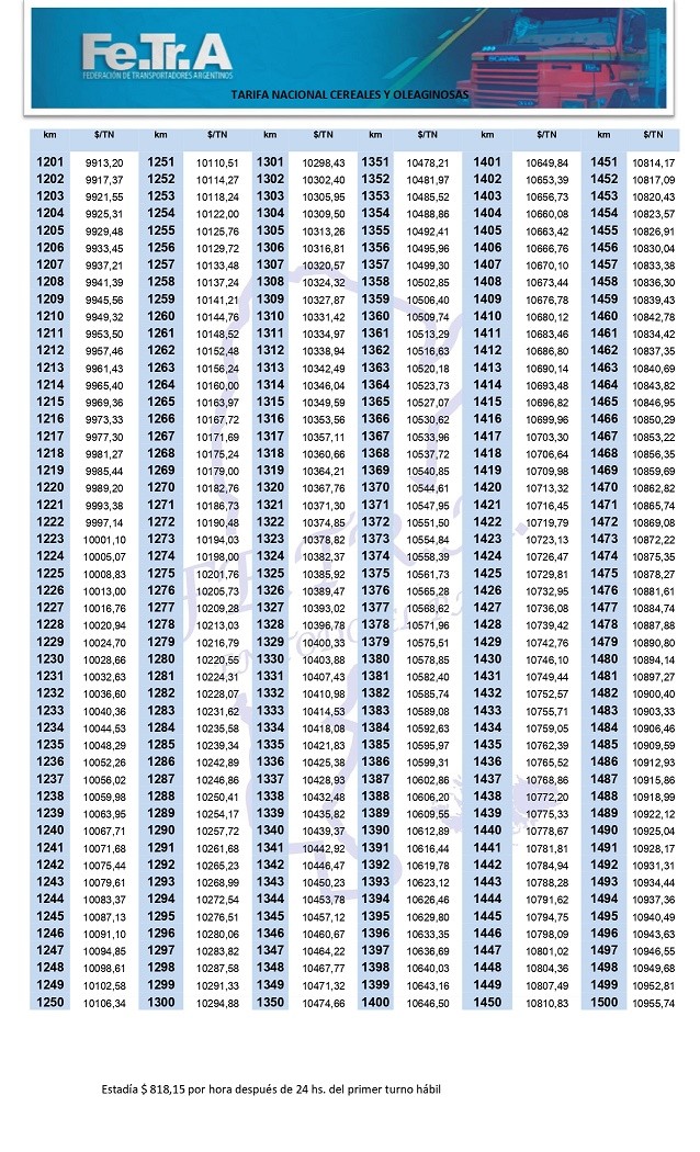 TARIFA NACIONAL PARA CEREALES Y OLEAGINOSAS ACTUALIZADA.