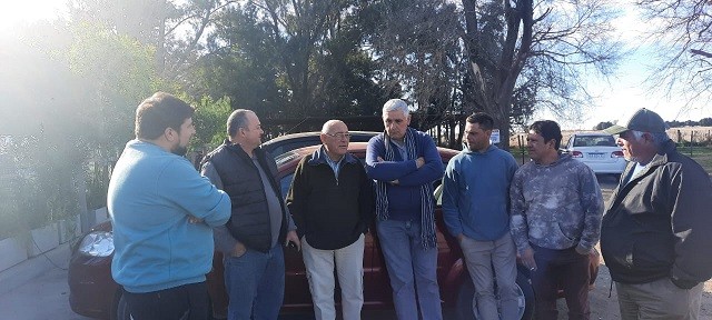 Claudio Enri secretario gremial de Fe.Tr.A junto a transportistas integrantes de la entidad adherida de Wheelwright se reúnen con el Sr. Gustavo Capreto responsable de la firma CAM Agropecuaria. Durante el desarrollo del encuentro se dialoga sobre diferentes temas para finalmente considerar la distribución de carga, luego de un importante intercambio de opiniones sobre la prestación del servicio, se acuerdan los porcentajes, firmándose el acta correspondiente.