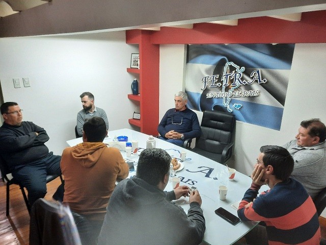El presidente de la entidad Neiber Mitre junto a transportistas integrantes de la Comisión directiva se reúnen con Pablo Agolanti vicepresidente de la Federación, Claudio Enri Secretario Gremial y Martín Pardo Asesor Legal. Durante la extensa charla se puso en conocimiento de los transportistas, del trabajo que vienen realizando las autoridades de Fe.Tr.A ante funcionarios Nacionales, Provinciales, Municipales y Comunales de diferentes puntos del país, los transportistas reconocen el accionar de la federación y exponen como desarrollan su actividad en la localidad y cuales son los temas en los que necesitan la asistencia y acompañamiento de los dirigente de Fe.Tr.A. por último se acuerda la modalidad de abordar los temas expuestos y se visitara la entidad próximamente.
