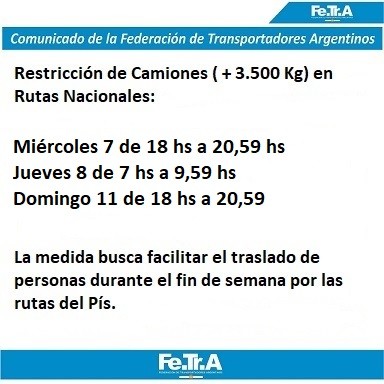 RESTRICCION A LA CIRCULACIÓN DE CAMIONES 7, 8 y 11 de Diciembre 2022.