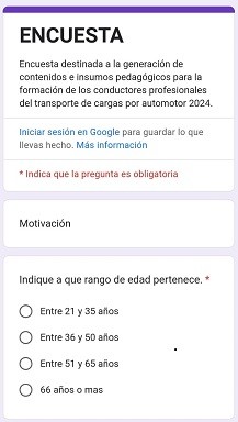 Encuesta destinada a la generación de contenidos e insumos pedagógicos para la formación de los conductores profesionales del TRANSPORTE DE CARGAS POR AUTOMOTOR. CLIC AQUI